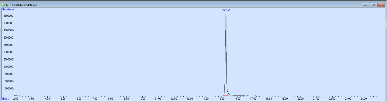 For pills and fake pills, you may see extra peaks on the left hand part of the chromatogram. These represent fillers and trace chemicals from the pill binder. These substances are better isolated using infrared light (FTIR), and GCMS only provides limited information. See note below under 'What we can and can't tell'. Contact us if you want details.