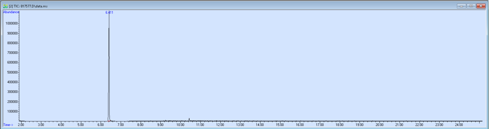 For pills and fake pills, you may see extra peaks on the left hand part of the chromatogram. These represent fillers and trace chemicals from the pill binder. These substances are better isolated using infrared light (FTIR), and GCMS only provides limited information. See note below under 'What we can and can't tell'. Contact us if you want details.